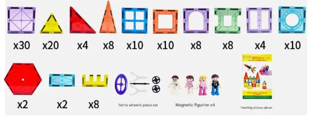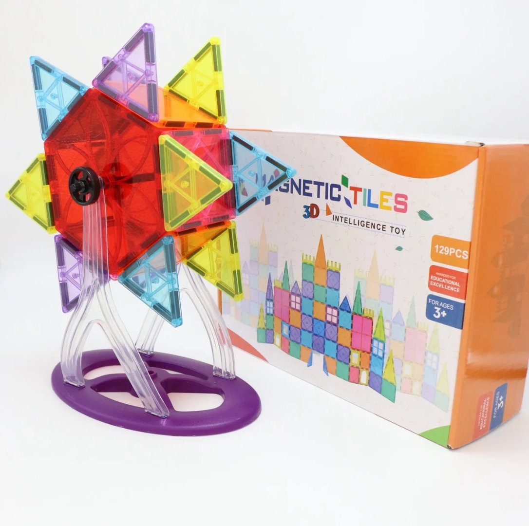 هذه المجموعة تضم 129 قطعة مغناطيسية متعددة الأشكال والألوان، مصممة لإعطاء الطفل حرية ابتكار هياكل متنوعة—من أبراج وهياكل هندسية إلى مجسمات مبتكرة خاصة به.