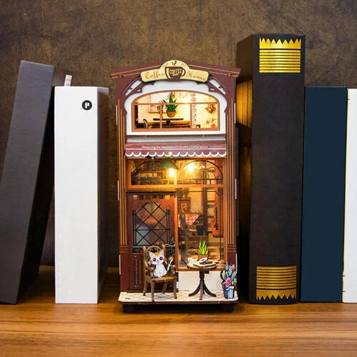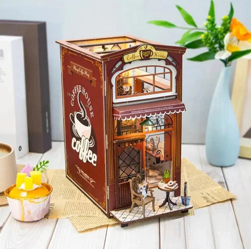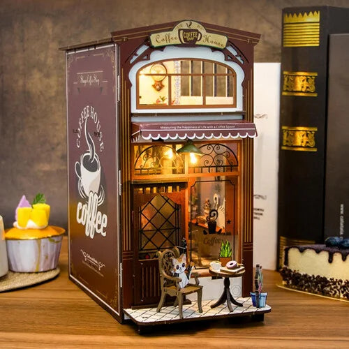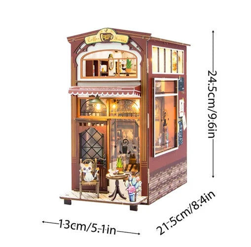 مجسم DIY مفصّل بتصميم مقهى صغير دافئ، يحتوي على أثاث وديكورات وإضاءة داخلية جميلة بالإضافة إلى صندوق موسيقي مدمج. يتيح للأطفال والكبار تجميع وإنشاء مقهى مصغر غني بالتفاصيل الواقعية مثل النوافذ الواضحة، الطاولات، الكراسي، النباتات وغيرها. تضيف الإضاءة الناعمة مع الموسيقى الهادئة أجواء جميلة تجعل المجسم مثاليًا للعرض أو كهدية مميزة.